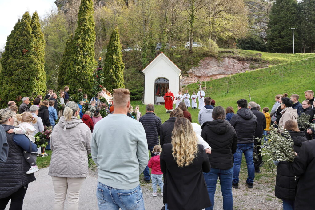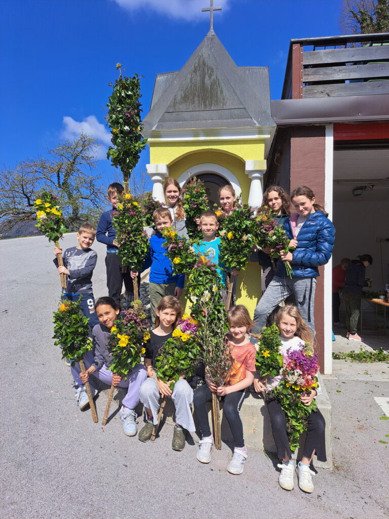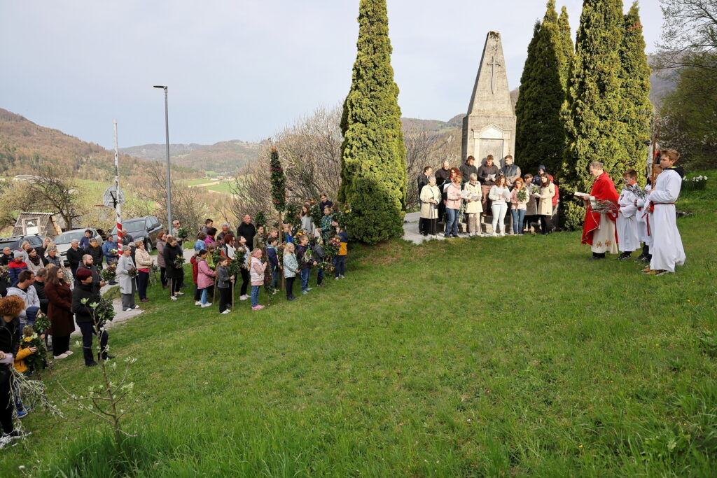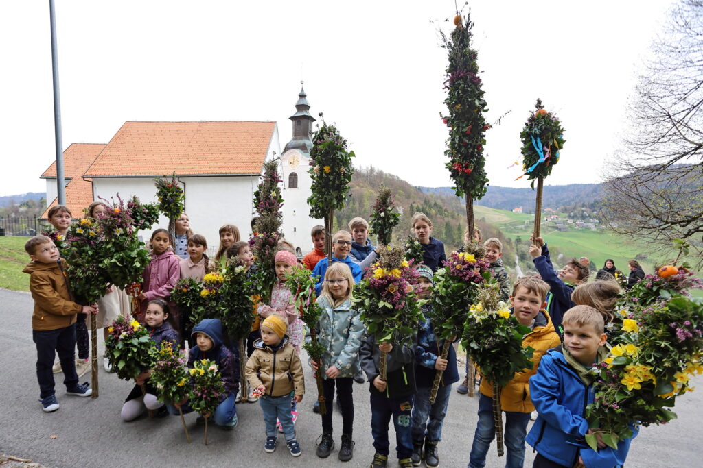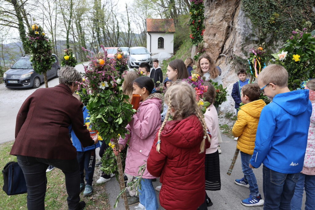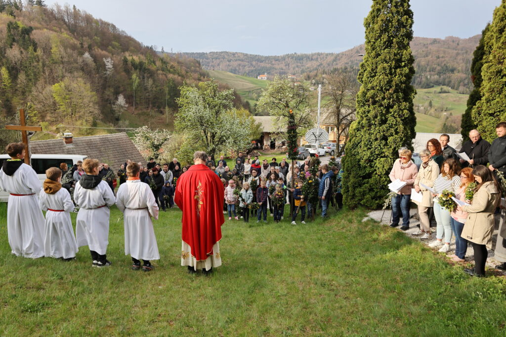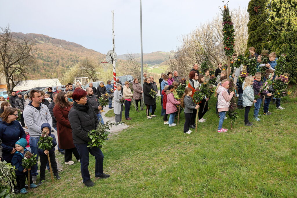 Praznovanje cvetne nedelje smo začeli zunaj, in sicer z blagoslovom zelenja in butaric pred kapelo sv. Križa oz. spomenikom padlih v prvi svetovni vojni. Nato smo v sprevodu odšli v cerkev. Nadaljevali smo z mašo, branjem pasijona in aktivnim sodelovanjem veroučencev s petjem in prošnjami. Ob koncu maše smo se družili še zunaj in dokumentirali naše izdelke. Ob tem smo se tudi posladkali, saj je gospod župnik poskrbel, da so bili izdelovalci butaric za svoje delo nagrajeni.