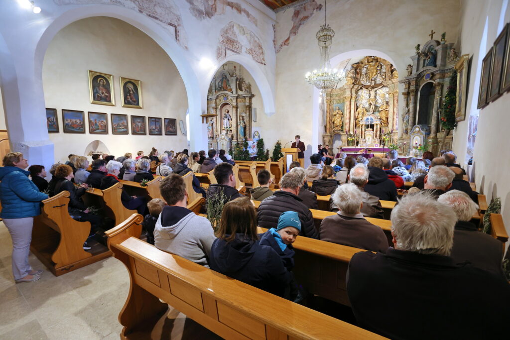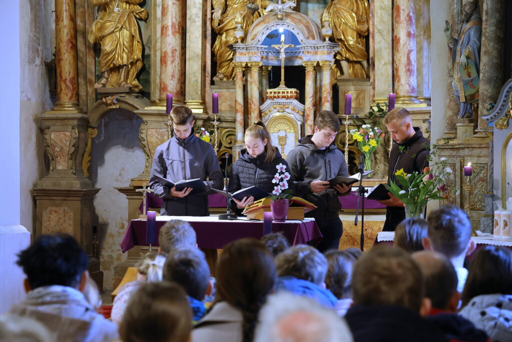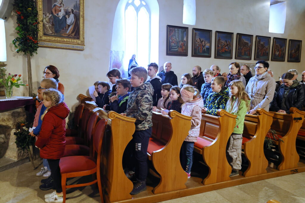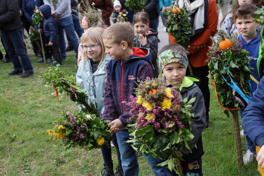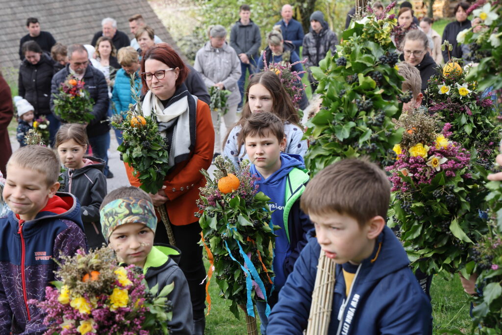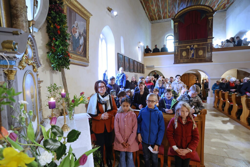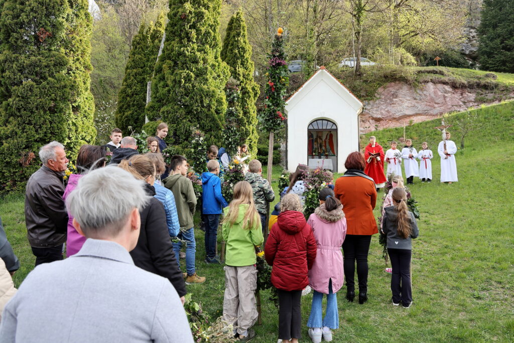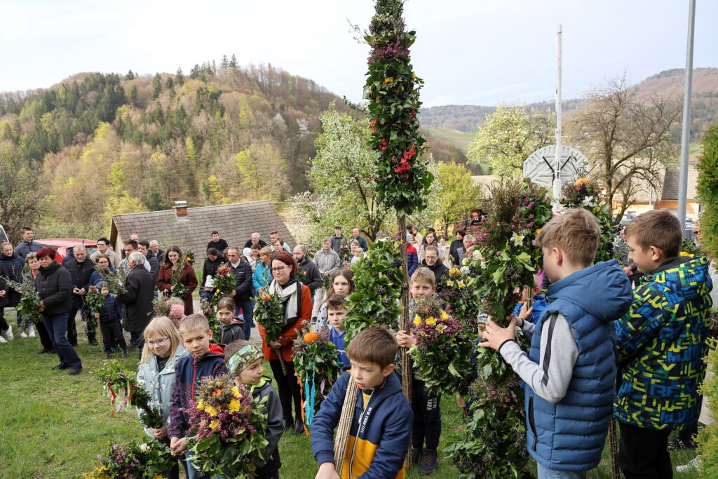 Praznovanje cvetne nedelje smo začeli zunaj, in sicer z blagoslovom zelenja in butaric pred kapelo sv. Križa oz. spomenikom padlih v prvi svetovni vojni. Nato smo v sprevodu odšli v cerkev. Nadaljevali smo z mašo, branjem pasijona in aktivnim sodelovanjem veroučencev s petjem in prošnjami. Ob koncu maše smo se družili še zunaj in dokumentirali naše izdelke. Ob tem smo se tudi posladkali, saj je gospod župnik poskrbel, da so bili izdelovalci butaric za svoje delo nagrajeni.