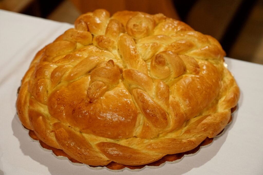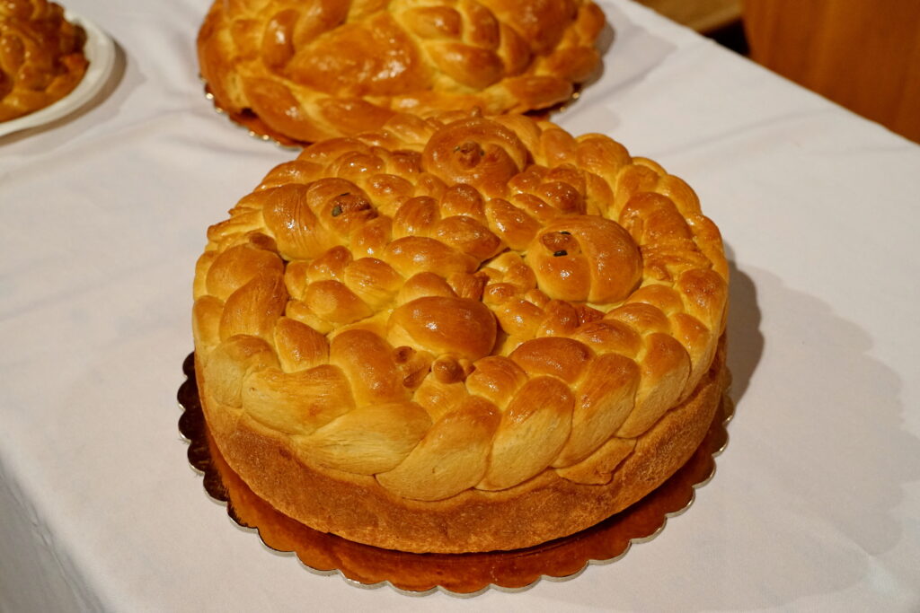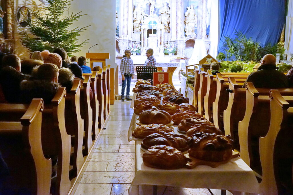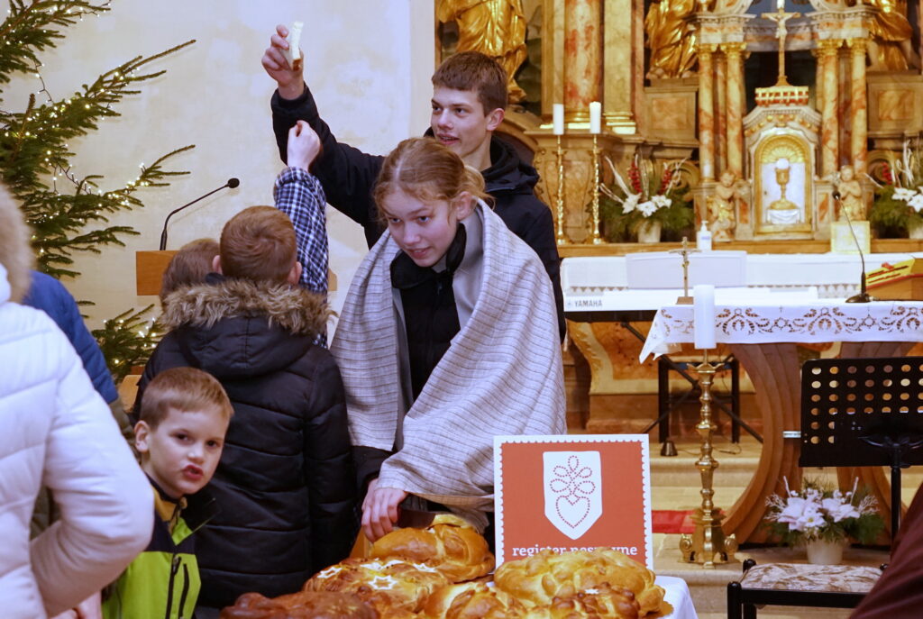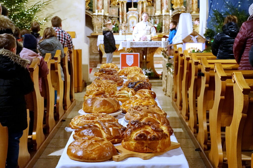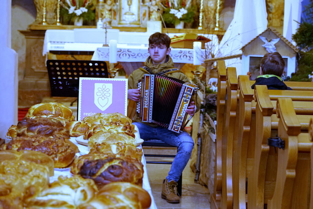 Poprtnik k blagoslovu in na razstavo v župnijski cerkvi Povišanja sv. Križa prinašajo na praznik svetih treh kraljev od leta 2017. Tako je bilo tudi na tretji sveti večer, 5. januarja, ko so v župnijski cerkvi naše ustvarjalne gospodinje razstavile 30 poprtnikov, različno okrašenih, oblike in velikosti, se udeležile maše in otroške božičnice. Župnik Janez Jasenc je nato tudi blagoslovil božični kruh. Tako je še bolj praznično zadišalo v svetišču in nenazadnje tudi po naših domovih v blagoslov vsem njihovim prebivalcem. Navzoči otroci pa so skakali kvišku za dvignjenimi kosi poprtnika, da bi čimbolj zrasli letos. Župnik Janez Jasenc se je ženam in možem zahvalil za peko in prinos v cerkev.