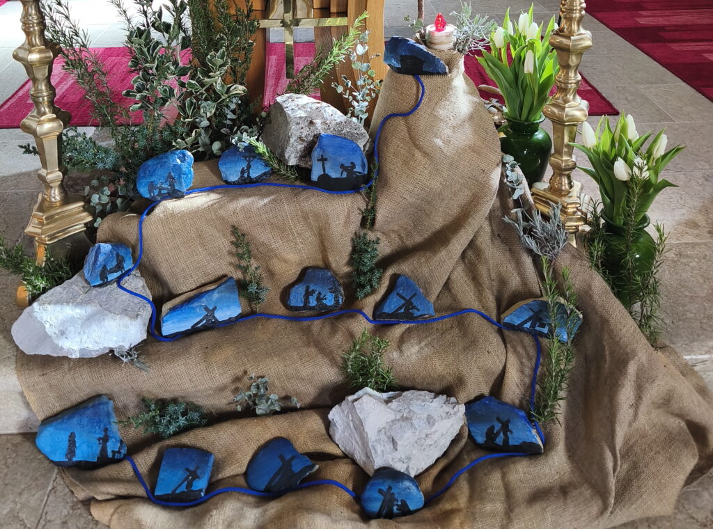 “Kaj mi pomeni postni čas? Lahko v sebi premislim? Si dovolim vzeti čas za premislek? Ali znam odpreti vsebine v literaturi, morda na spletu… Ali preprosto moliti, se pogovarjam z Jezusom na svoj oseben način. Naj me On vodi, naj me usmerja, naj mi spregovori. Ali znam prositi za to in biti odprt za božja sporočila? V župnijski cerkvi me nagovori križev pot pred daritveno mizo. Vsaka postaja na svojem kamnu. Jezus je sprejel obsodbo in križ na svoje rame ter se podal na pot. Kako pa jaz sprejmem svoj življenjski križ? Lahko najdem tolažbo in pomoč v veri, upanju in ljubezni? Celo življenje se učim tega. Vedno znova prisluhnem božjim sporočilom, a še vedno znam omahniti, pasti, obupovati, toniti… Tedaj se lahko… kaj lahko? Moram se okleniti božjega usmiljenja! Tudi Jezus je vedno znova vstal, se pobral in nadaljeval. Ne le zase, temveč tudi zame, zate, za vse nas. Na poti je srečal njemu pomembne ljudi… Tudi moje življenje je polno ljudi, s katerimi živim, delam, jih srečujem, sodelujem… Kaj mi pomenijo? Kako jih sprejemam? Kaj vidim v njih? Kaj vidim v sočloveku? Me potrebuje, mu lahko pomagam, ali jaz potrebujem njegovo pomoč, oporo…? Morda je letošnji postni čas – čas, ko sem lahko hvaležen za ljudi okoli sebe. Čas, ko v sopotnikih – na moji življenjski poti – vidim dobro, pozitivno, in iz svojega srca preženem predsodke, pomisleke in negativne misli. Tudi moje življenje je potovanje skozi načrt božjega križevega pota. Na meni je, da v to zaupam in uresničujem svoje poslanstvo na katerega sem poslan.