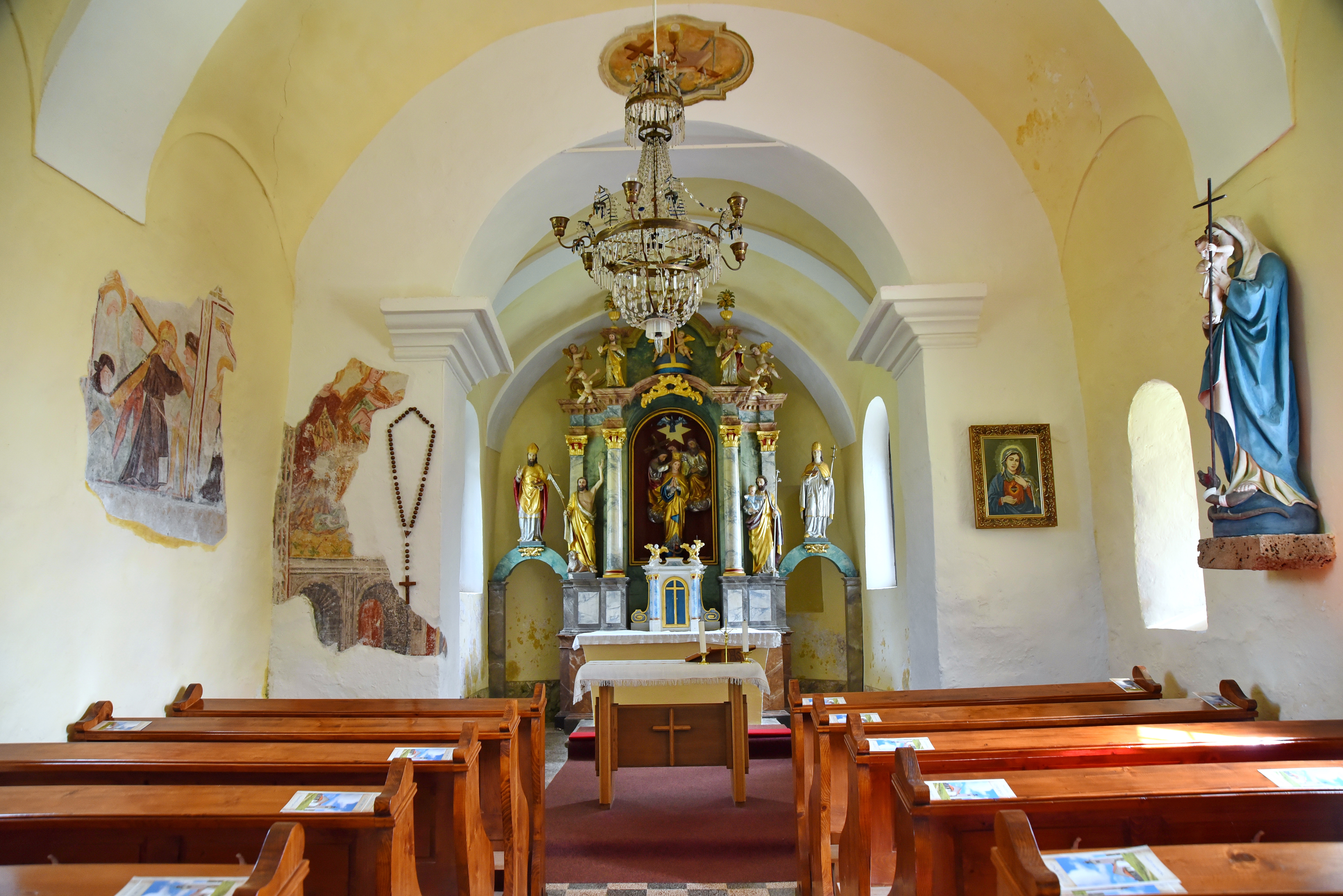 Podružnična cerkev sv. Trojice na majhni vzpetini nad vasjo pa priča o stoletni povezanosti vaščanov s krščanstvom in Cerkvijo. V južni steni je ohranjeno manjše lijakasto romansko okno. Poznogotsko renesančne freske, fragmentarno ohranjene, so iz let okoli 1520–1530. Na severni steni je bil naslikan ciklus sedmih prizorov Križevega pota, na slavoloku Mati božja z otrokom, Doroteja, školjkasta niša idr.